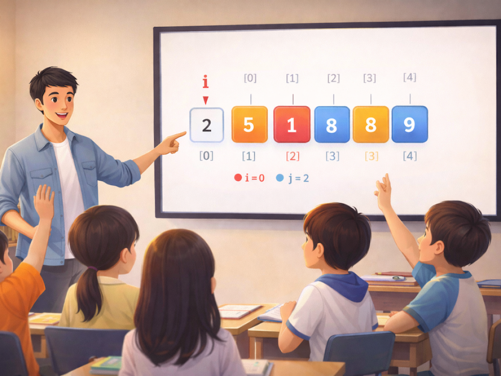 下次讲排序算法的时候,让 i 和 j 自己”站”到数组上去吧。