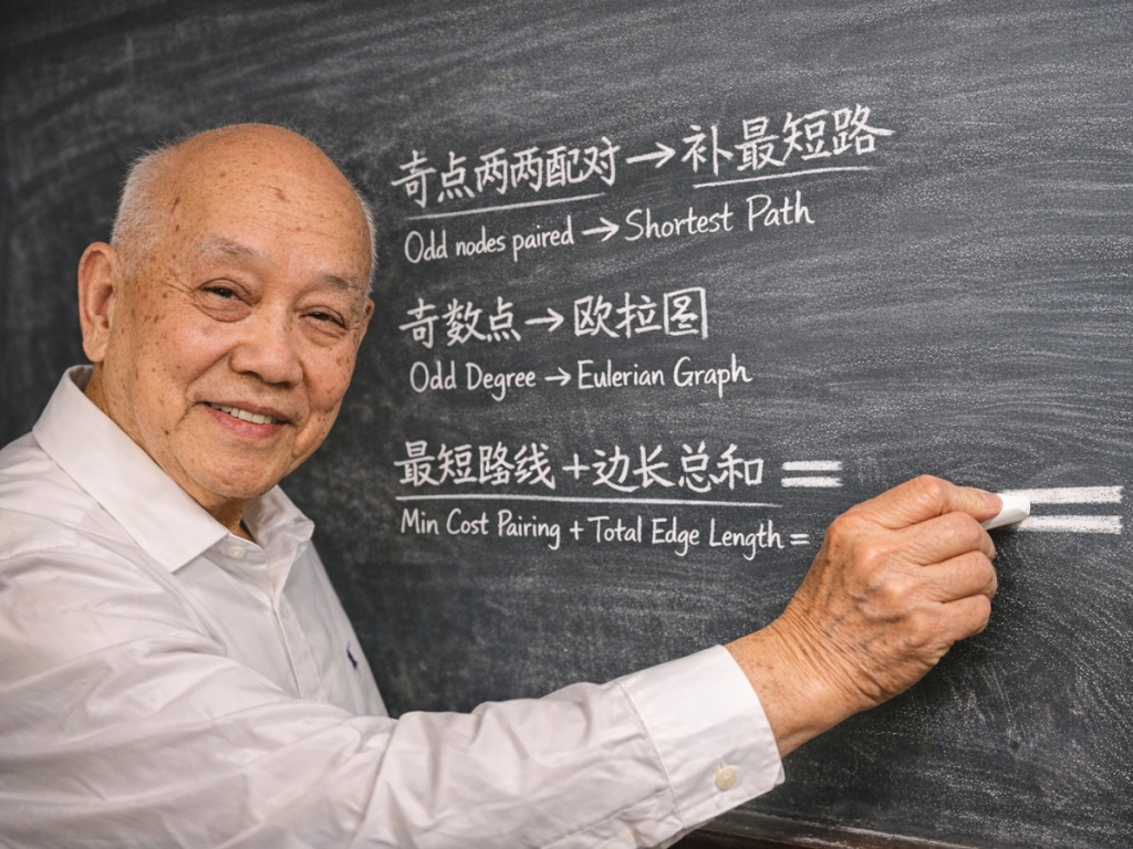 在 1960 年代,他将“邮递员送信路线”这一现实问题抽象为数学模型,并给出了系统解法。